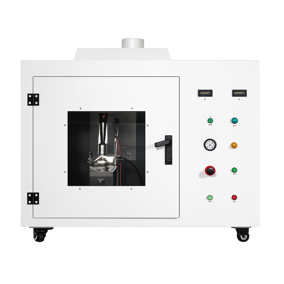 Оборудование предназначено для оценки опасности воспламенения и характеристик горения тонких подвесных текстильных материалов. Метод испытаний не применяется для толстых материалов или материалов с покрытием.