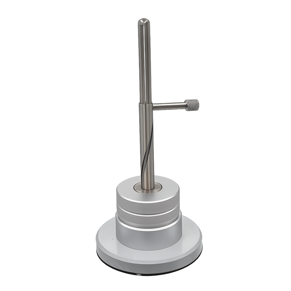 Конструкция прибора выполнена в виде компактной механической установки с нагружением образца с помощью сменных грузов. Прецизионная винтовая колонна и направляющая 180-градусная спиральная канавка обеспечивают равномерную деформацию образца и стабильность условий испытаний. Отсутствие электропитания повышает надёжность и упрощает эксплуатацию оборудования.