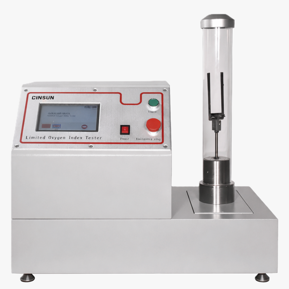 Испытательная установка для определения предельного кислородного индекса F101A применяется для измерения минимальной концентрации кислорода, при которой материал способен поддерживать устойчивое горение.